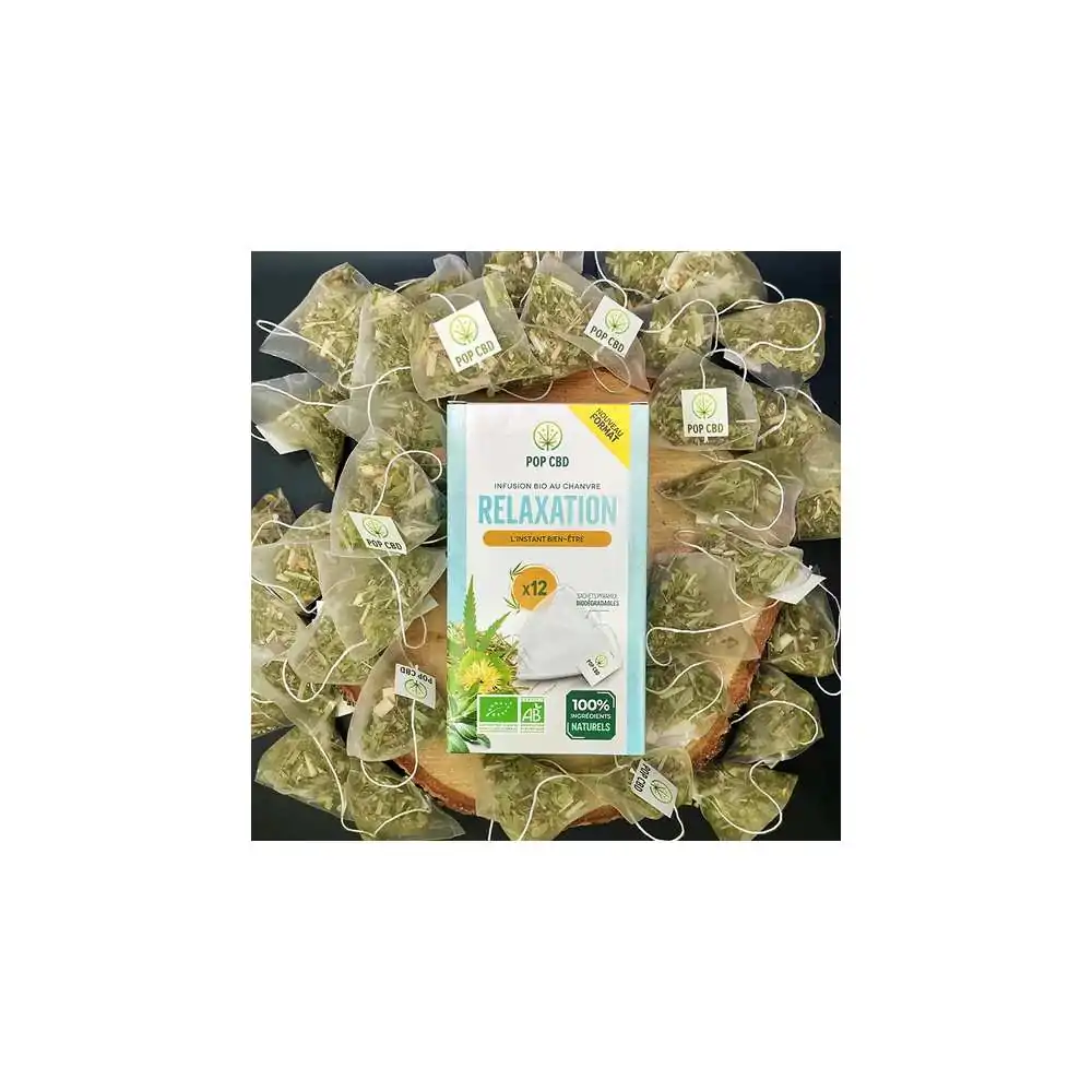 La Tisane CBD Bio Relaxation de POP CBD est un mélange harmonieux associant 30% de chanvre à des plantes reconnues pour leurs vertus apaisantes. Cette infusion bio combine la douceur de la mélisse, du tilleul et de la camomille aux notes aromatiques du gingembre, de la cannelle et des agrumes. Présentée en boîte de 12 sachets pyramide biodégradables, cette tisane 100% naturelle est idéale pour les moments de détente et de bien-être.